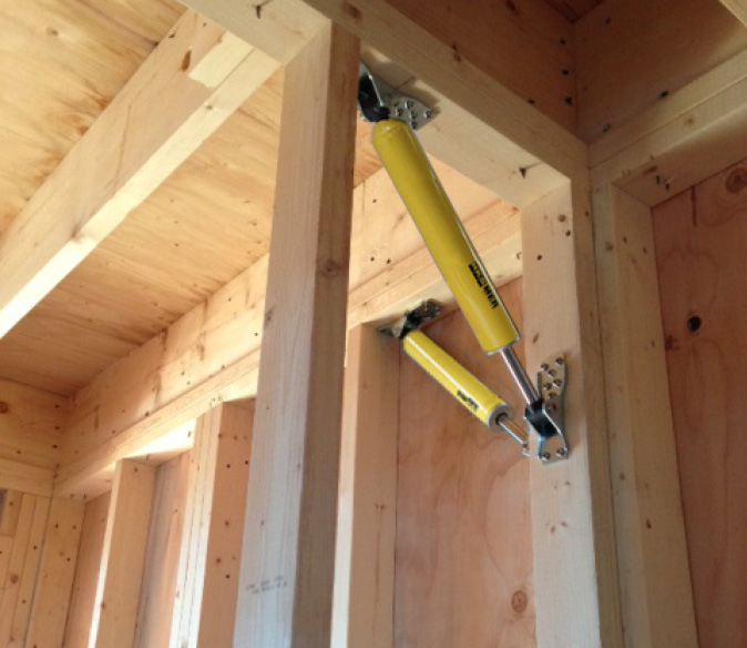 分かり易く言うと、地震時の家の倒壊を防ぐ役割が耐力壁で、繰り返す振動の中でその耐力壁が限界点(耐力壁が本来持っている力の限界)にまで達しないように力を吸収してくれるのが、制振装置です。